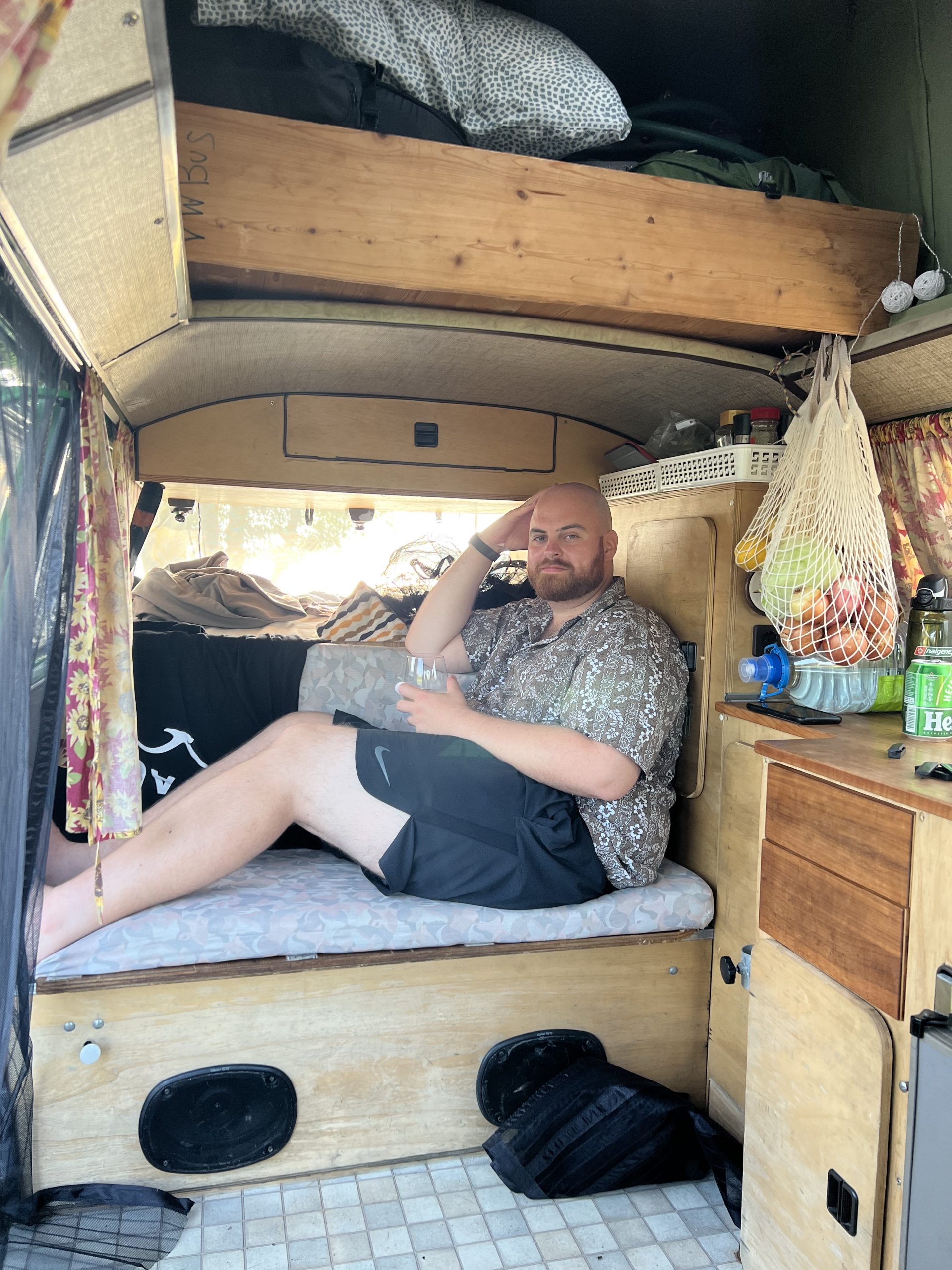 Mit guter Laune machen wir uns auf den Weg ein weiteres Auto anzuschauen. Ja, ich weiß eigentlich, haben wir uns schon für eins entschieden, aber nur so zum Vergleich. Es ist ein 1994er Chevrolet, Jeff unser Mitbewohner hatte uns ein Chevy empfohlen, weil diese sehr zuverlässige Autos sind – es ist also ein „Jevy“ 😀 Wir lernen Olive und sein Auto „Suzanne“ kennen – bei dem Namen wäre es eigentlich perfekt, weil meine Mama Susanne heißt. Leider hat „Suzanne“ ein Querbett hinten und Malte passt nur diagonal ins Bett und für mich wäre kein Platz mehr. Dafür quatschen wir super nett mit Olive, der einen echt coolen Lifestyle hat. Er lebt nämlich in Suzanne und reist mit ihr durchs Land den Sommer über. Dies finanziert er sich, in dem er den ganzen Winter über als Kellner arbeitet. Er erzählt, dass er in einem 9 to 5 Job einfach nicht glücklich war und lieber im Winter viel arbeitet, um dann im Sommer frei zu haben. Wir können ihn verstehen und erzählen ihm, von unserem Weltreise-Plan, den er auch ziemlich cool findet. Später sagen wir ihm, weil das Bett einfach zu klein ist, er gibt uns noch eine Menge Tipps und wir sind weiterhin in Kontakt.