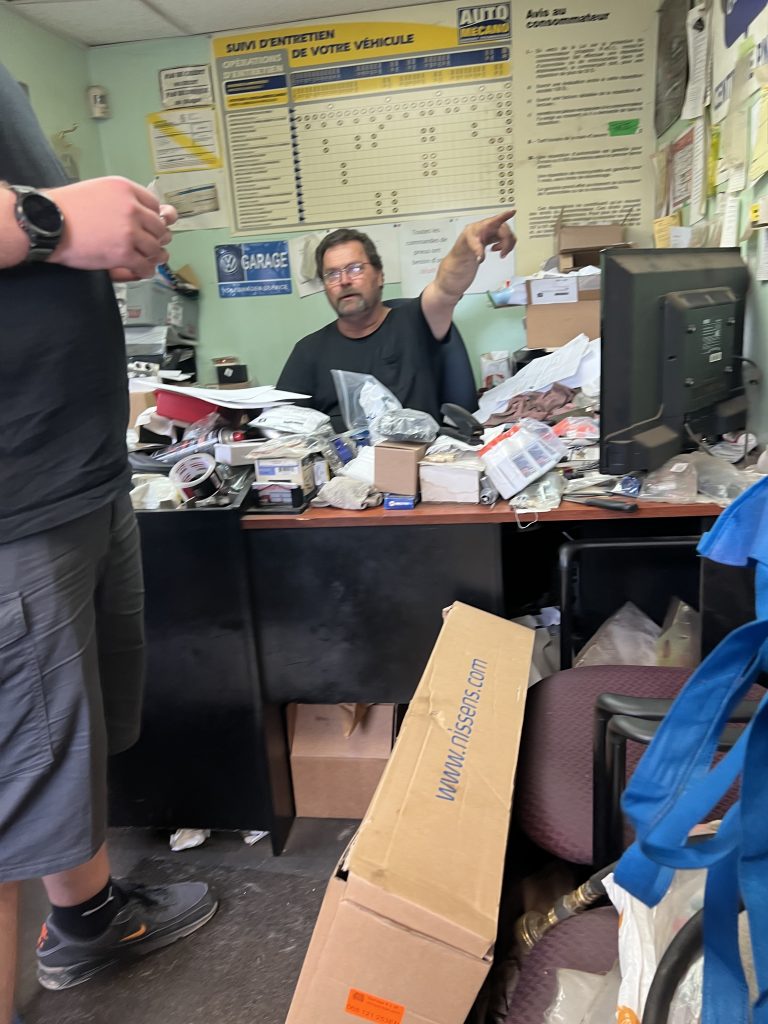 Am nächsten Tag (20.07.) ruft Laury uns an und fragt, was nochmal genau sonst am Auto gemacht werden sollte (wir hatten noch um einen Ölwechsel gebeten), weil der Werkstattmensch das gefragt hat. Wir sind etwas verwirrt, warum er und auch sie das jetzt nicht mehr wissen und haben ein ungutes Gefühl. Irgendwie ist es blöd, dass alles über sie läuft, nur weil der Mechaniker aus der Werkstatt nur Französisch spricht. Wir beschließen noch am gleichen Tag zur Werkstatt zu fahren und persönlich mit dem Typen zu sprechen. Dort angekommen stellt sich heraus, dass wir Laury falsch verstanden haben und er keinen neuen Kühler bestellt hat. Er meint, wir könnten trotzdem mit dem Auto fahren und sollen nur alle 100km das Kühlmittel kontrollieren und ggf. auffüllen, morgen würde er dann einen Ölwechsel machen und wir könnten losfahren. Da wir aber für die große Tour durch Kanada auf jeden Fall einen neuen Kühler und kein Risiko eingehen wollen, fragen wir, ob wir das Auto jetzt mitnehmen, einen Kühler besorgen und es am Montag für den Kühlertausch und den Ölwechsel zurückbringen können. Er stimmt zu. Wir fragen Laury nach dem drei Stunden entfernten Shop und rufen dort an. Es stellt sich heraus, dass der Original-Kühler gerade auf dem Weg mit dem Schiff aus Dänemark ist und es halt noch 1-3 Wochen dauern kann, da hilft auch der Expressversand nicht. Allerdings hat der Typ aus dem Shop noch drei weitere Kühler, die ebenfalls passen, die nur teurer sind. Da es am Telefon alles etwas kompliziert ist, beschließen wir morgen einfach zum Shop hinzufahren. Dieser ist übrigens auch nur 1,5 Stunden entfernt, also insgesamt eine Fahrt von 3 Stunden.