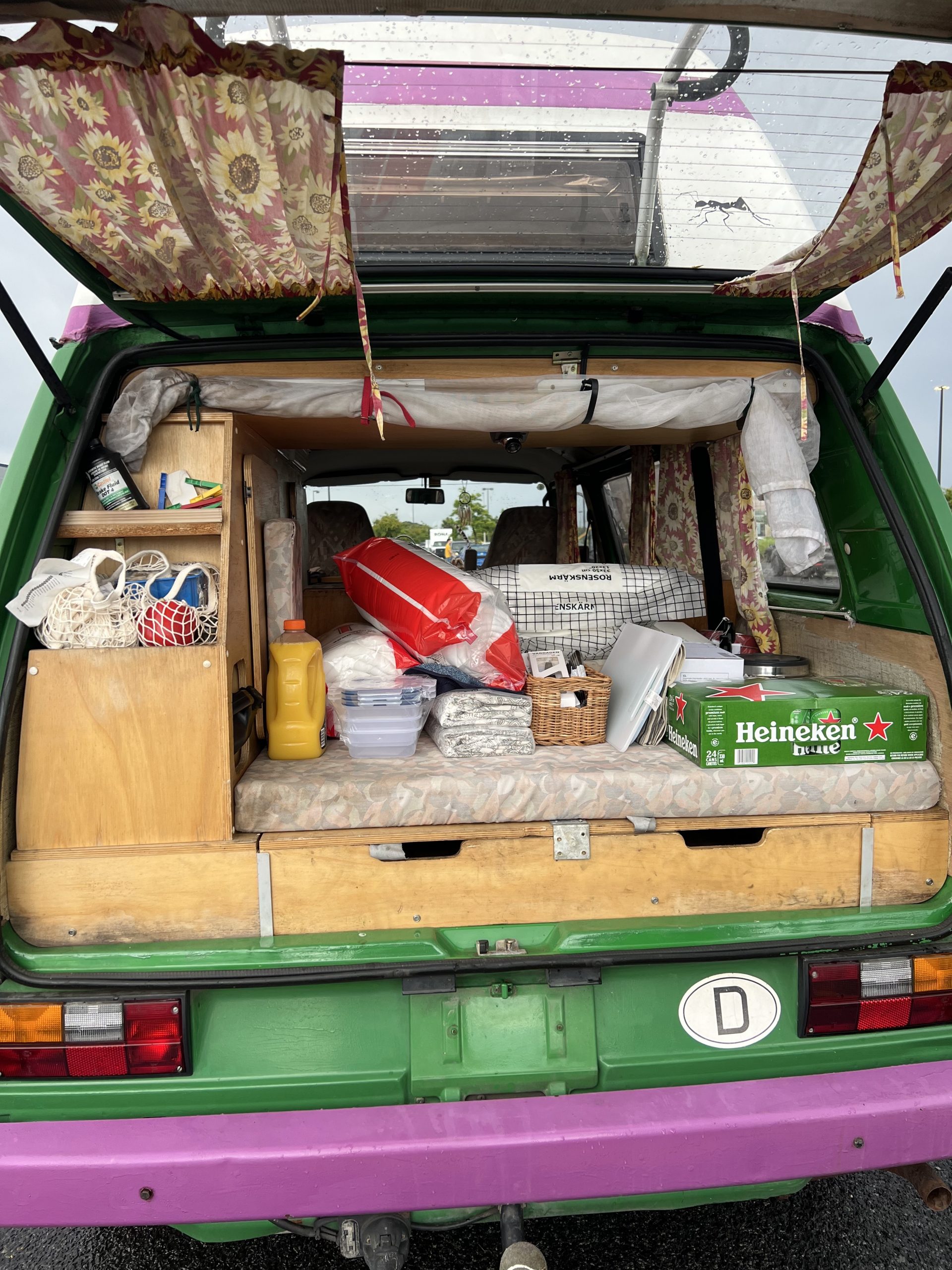 Das erste Auto schauen wir uns in Toronto an. An dem Tag, an dem wir nachmittags mit einer Mitfahrgelegenheit nach Montréal fahren (28.06.), machen wir vormittags eine Probefahrt mit einem PKW von zwei deutschen Reisenden. In den PKW haben sie sich aus Holz ein Bettgestell gebaut, was man auch zum Sofa umfunktionieren kann. Zudem gibt es ein kleines Küchenregal mit Wasserkanister, Platz für Geschirr und Lebensmittel. Generell ein sehr cooles Auto, allerdings ist es uns etwas zu stressig, da die beiden 3 Tage später das Land verlassen wollen und wir in der Zeit noch einiges bezüglich Registrierung usw. organisieren müssten. Im Nachhinein eine sehr gute Entscheidung, denn so schnell hätte es in Québec auf jeden Fall nicht geklappt.