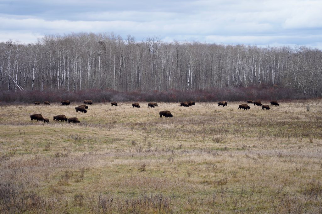 Am nächsten Tag beschließen wir zum „Riding-Mountain-Nationalpark“ zu fahren. Wir bereits gesagt, wollen wir uns auch ein paar wenige Sachen angucken, da wir nicht wissen, ob wir die Chance noch mal bekommen. Das Highlight des Nationalparks sind die dort lebenden Bison Herden. Mit dem Ziel, ein paar Bisons zu sehen, geht es los. Bei der Einfahrt in den Nationalpark sind wir völlig erstaunt. Wow, Manitoba, du kannst es ja doch. Du hast ja doch noch was zu bieten. Wunderschön grüne Nadelwälder, neben einigen größeren Sehen prägen die Landschaft. Es wird auch wieder bisschen bergiger und wir genießen die Umgebung. Wir haben auch das große Glück, die Bison Herde aus nächster Näher zu sehen und eine Weile zu beobachten. Was für massive, große Tiere. Atemberaubend. Ein Stück südlich des Nationalparks, finden wir wieder einen schönen Platz für die kommende Nacht. Die Fahrt dorthin führt über kleine Landstraßen, vorbei an gold-gelben Feldern. Als die Sonne am Horizont untergeht und die Felder in eine goldene Farbenpracht verwandelt, sehen wir, dass auch Manitoba einzigartige Momente zu bieten hat. Sorry Manitoba an dieser Stelle, dass wir zu schnell geurteilt haben! Abends entdecken die Jungs beim Angeln auch noch einen Bieber in dem See und wir fühlen uns einfach nur glücklich über diesen wunderschönen Tag mit einzigartigen Wildtierbegegnungen.