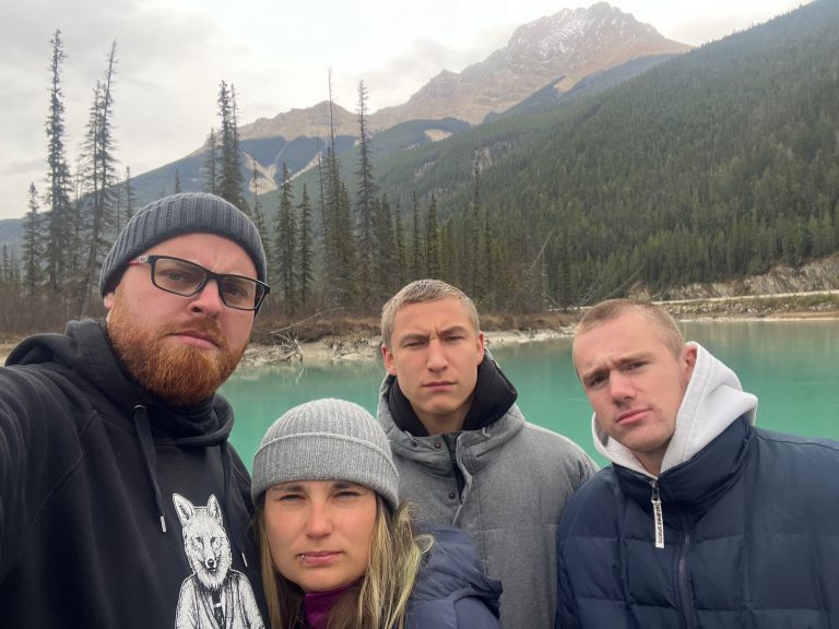 What? Wirklich? Haben wir soeben wirklich die Grenze nach British-Columbia überquert? Ja, haben wir. Wir haben es geschafft. Wir sind in der Provinz unseres Zielortes. Wir sind angekommen in der jetzt 10. Provinz auf unserer Tour. Ein unbeschreibliches Gefühl. Denn wir haben es jetzt nicht nur nach British-Columbia geschafft, sondern somit auch den Kicking Horse Pass überwunden. Und ehrlich gesagt, war es überhaupt nicht so schwer, wie befürchtet. Dadurch dass es stätig ein bisschen bergauf ging, ist uns kaum aufgefallen, dass wir auf 1.627m hoch gefahren sind. Wahnsinn. Jetzt nur noch nach Golden und wir haben unsere Tagesetappe geschafft. Auf dem Weg machen wir noch einen kurzen Halt an einem, eigentlich bereits geschlossenem, Parkplatz, um kurz runter zu einem knall türkisen Fluss zu gehen und das Bergpanorama, dass man mittlerweile schon besser sehen kann, zu bewundern. Es ist seit Tagen, das erste Mal, dass bei mir eine große Last abfällt. Wir sind jetzt in den Rockys. Wir haben es geschafft. Also noch nicht ganz und vor uns liegt noch eine weite Strecke, aber egal. Jetzt kann uns nichts mehr aufhalten.