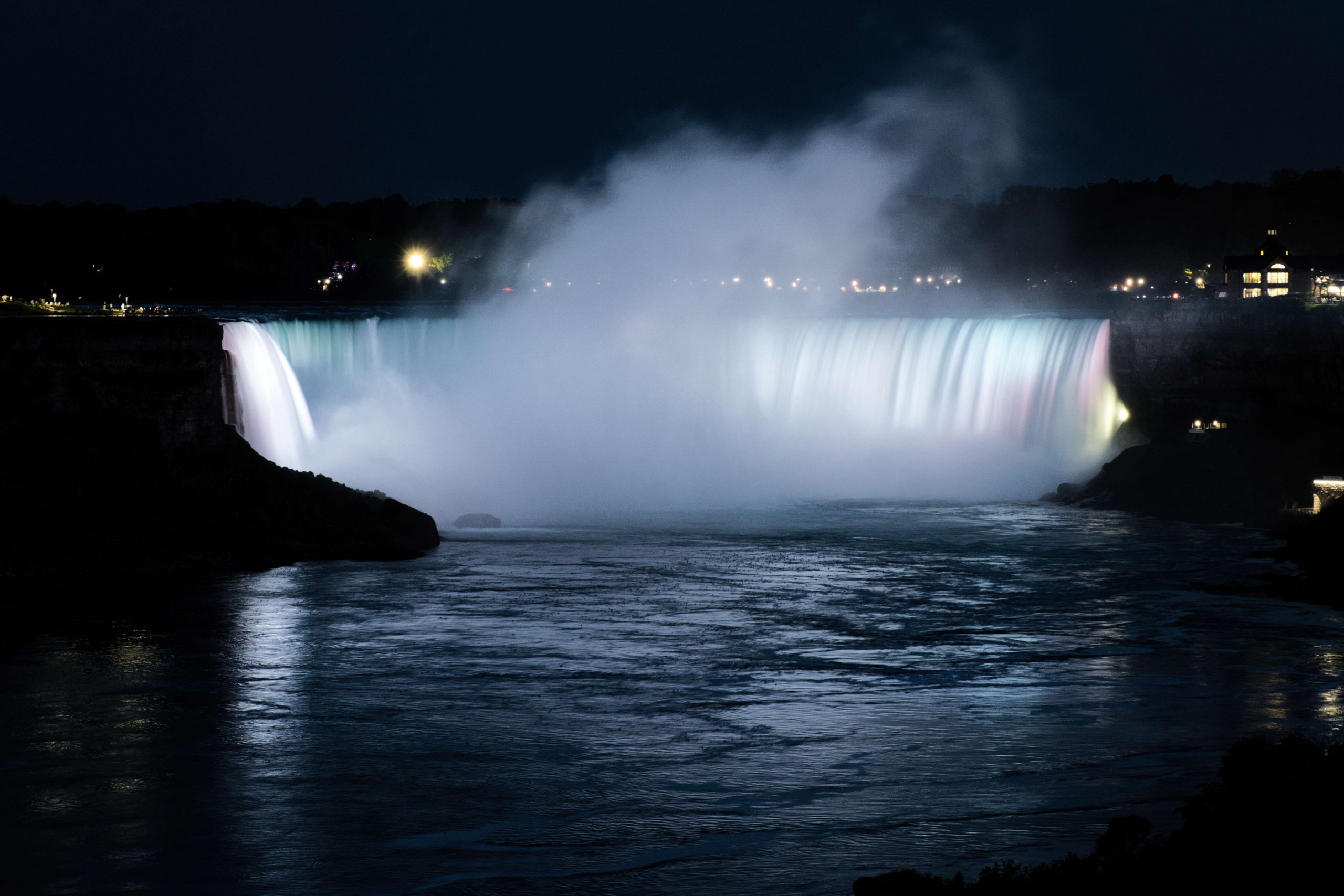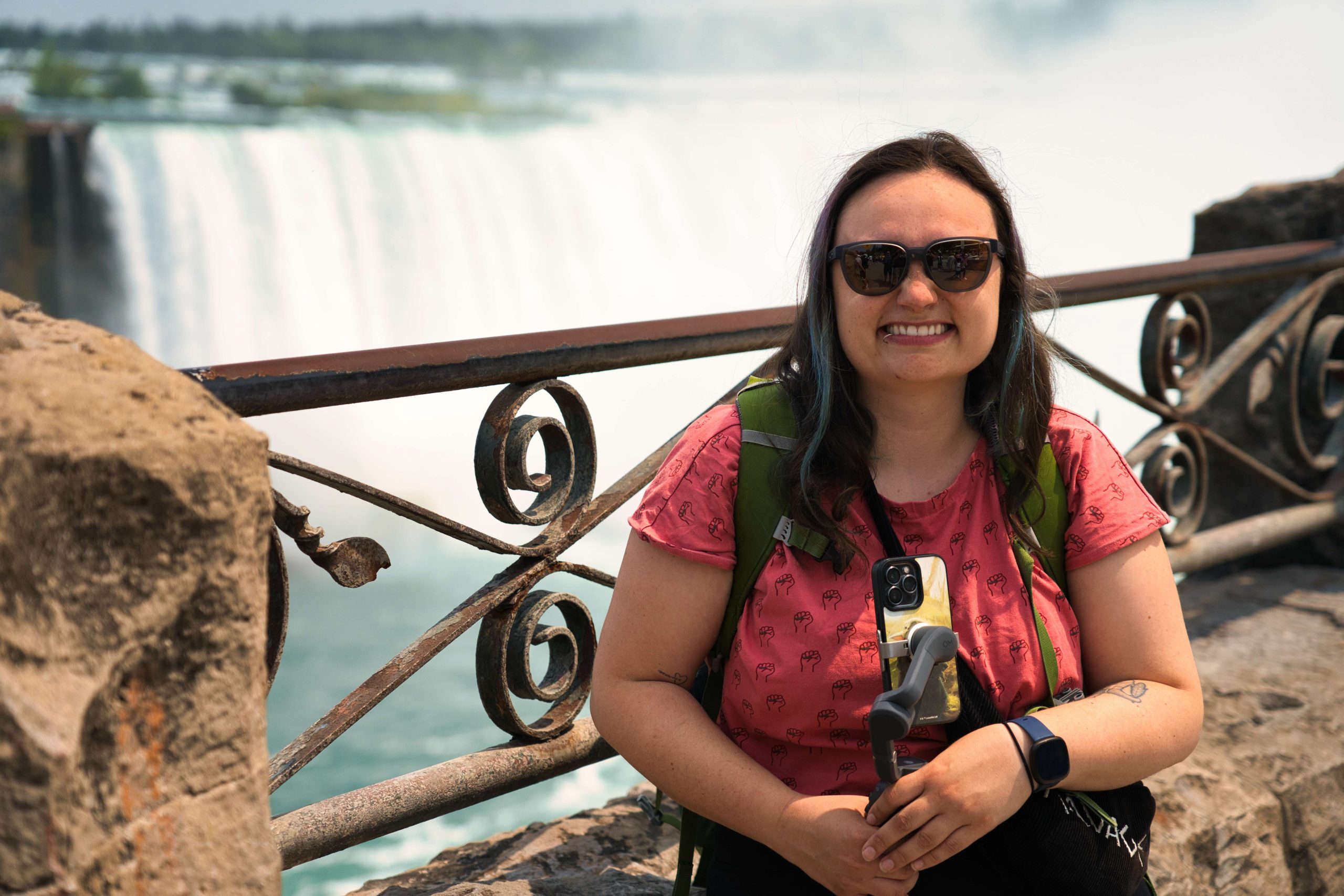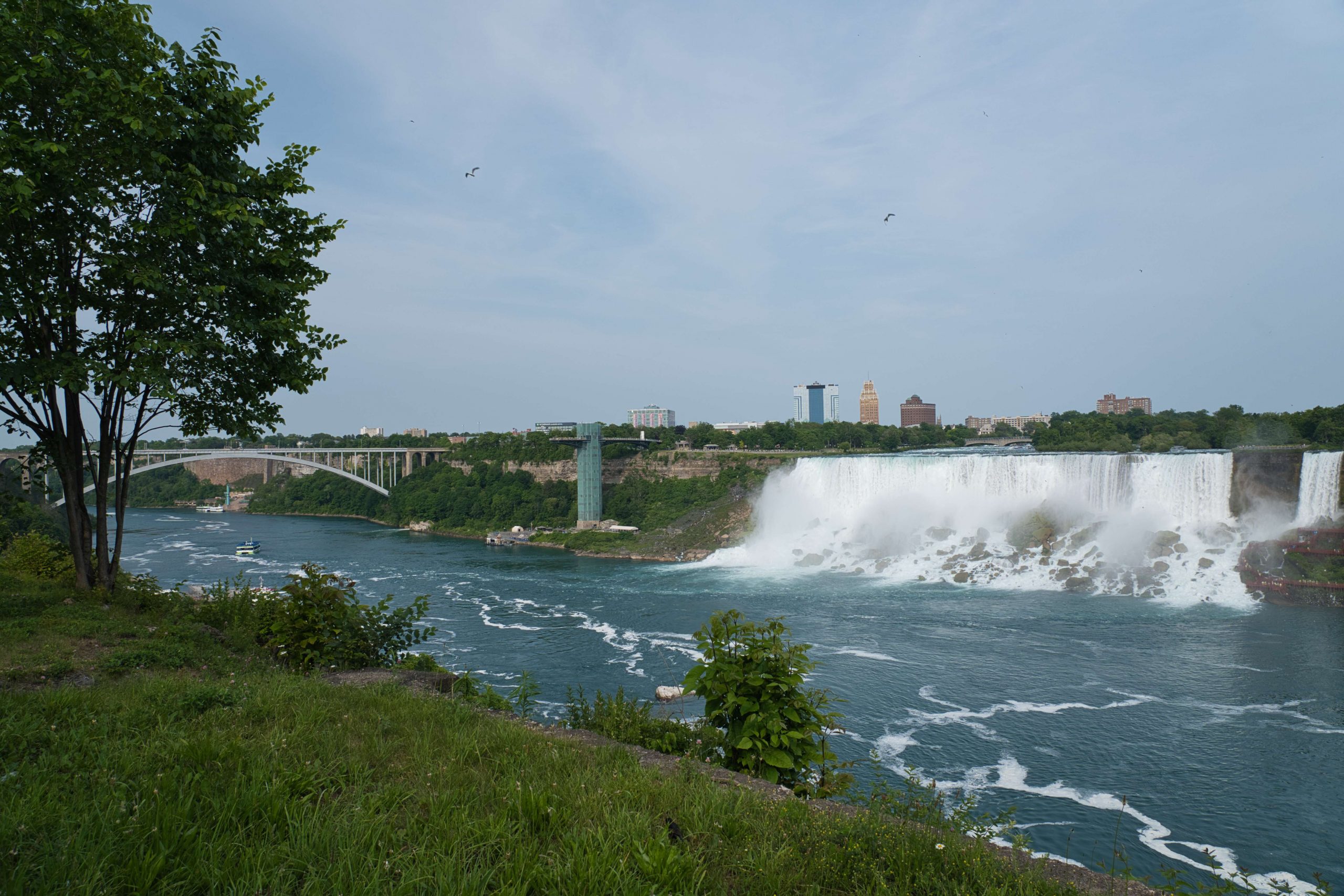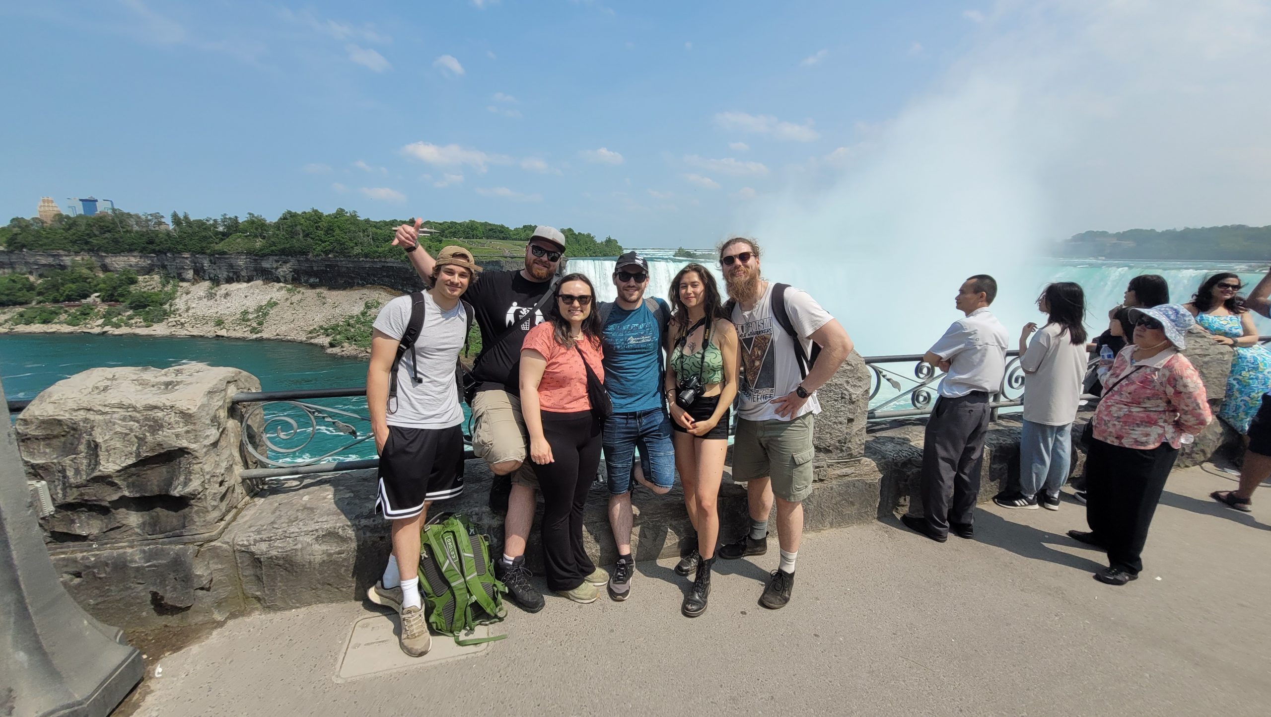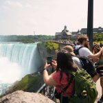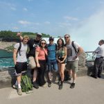 Update von Lara zum Ausflug zu den Niagara Falls: Etwa 140km von Toronto entfernt liegen die Niagara Wasserfälle. Über einen Facebook-Beitrag in einer Work and Travel Kanada Gruppe haben wir uns mit ein paar anderen Reisenden vernetzt, um zusammen einen Ausflug zu den Wasserfällen zu machen. Marshal und Manou, ein deutsches Paar, was bereits seit Oktober 2022 in Kanada unterwegs ist, haben ein großes Motorhome, mit dem wir netterweise zusammen zu den Wasserfällen hinfahren können. Jakob, der etwas außerhalb von Toronto wohnt, ist auch gerade für ein paar Monate in Kanada, um sein Englisch aufzubessern, bevor er mit dem Studieren beginnt. Und Yvan, unser Zimmernachbar, ein Franzose, der seit einem Jahr in Montréal wohnt und für ein paar Tage in Toronto ist, um ebenfalls sein Englisch aufzubessern, ist auch mit dabei. Da Marshal mit dem Motorhome nur so 75km/h fährt, damit es nicht ganz so viel Benzin schluckt, brauchen wir statt 2 knapp über 3 Stunden. Aber das ist völlig in Ordnung, denn wir sitzen ganz gemütlich hinten im Wohnmobil zwischen all dem schönen Feder- und Steinschmuck, den Manou gebastelt hat, und genießen die Aussicht. Wir parken auf einem großen Parkplatz und machen uns auf den Weg zu den Falls. Angekommen sind Malte und ich tatsächlich als erstes etwas enttäuscht und denken so „Okay, das sind also diese berühmten Wasserfälle. Haben wir uns irgendwie größer vorgestellt.“ Es sind sehr viele Tourist*innen auf dem Gehweh unterwegs und die Boote, die ganz nah an die Wasserfälle ran fahren, sind auch super voll. Alle haben Regenponchos an, auf den Booten aus der USA blaue Ponchos, auf den Booten aus Kanada rote – es wird hier also ganz deutlich gemacht, wer aus welchem Land kommt. Wir haben keine Lust viel Geld zu bezahlen, um mit einem Boot einmal kurz ranzufahren und nass zu werden. Wir spazieren also Richtung einem Wasserfall und beobachten einen Vogel dabei, wie er am Abgrund verschwindet und hoffen, dass ihm nichts passiert ist. Je weiter wir gehen, desto weniger Menschen werden es und es wird entspannter. Wir finden einen großen Baum, dessen Äste eine Höhle bilden, in die man reingehen kann und betrachten die Schnitzereien auf der Rinde. Da es irgendwann nicht mehr so richtig weitergeht, drehen wir wieder um und gehen den Weg zurück und Richtung anderem Wasserfall. Als wir langsam Hunger bekommen, holen wir uns in einem kleinen Foodcourt was zu essen. Das Essen ist hier teuer und leider gibt es nur Fast Food Kram, alles sehr touristisch aufgezogen. Danach chillen wir uns in einen Park und beobachten das Wasser. Wir wollen noch bleiben, bis es dunkel wird, weil Marshal von einer Lichtershow um 20 Uhr gelesen hat. Leider ist um 20 Uhr noch nicht wirklich was zu sehen, es ist allerdings auch noch relativ hell. Wir setzen uns auf eine Mauer und quatschen, um uns die Zeit zu vertreiben. Gegen kurz nach 21 Uhr sind dann die ersten Lichter bei den Wasserfällen zu sehen und es sieht super schön aus. Wir suchen uns einen besseren Platz zum Sehen und beobachten, wie der Wasserfall in Regenbogenfarben leuchtet (Juni ist in Nordamerika der Pride-Monat). Ganz am Ende gibt es noch ein kurzes Feuerwerk, was man sich auch hätte sparen können. Wir machen uns auf den Weg zurück und gehen dabei noch durch eine Straße mit viel leuchtender Reklame, einigen Fast Food Läden und so Spielbuden wie auf dem Rummel, bloß in größer, einem Riesenrad Adventure Mini-Golf etc. – es fühlt sich an wie Klein Las Vegas und wir sind froh, als wir da durch sind und es etwas ruhiger ist. Auf einer Wiese sehen wir noch ein paar Füchse rumlaufen und dann sind wir auch schon wieder am Wohnmobil angekommen. Mit guter Musik machen wir uns auf den Weg nach Hause und Marshal bringt uns wieder wohlbehalten zurück nach Toronto, während wir alle hinten sitzen und schlafen. Dies war ein echt super schöner Ausflug und wir sind froh, dass man auf Reisen Dinge macht, die einem zu Hause nicht mal einfallen würden. Wir verabreden uns einfach mit fremden Menschen über Facebook, steigen bei ihnen mit noch anderen fremden Menschen ins Auto und machen alle gemeinsam einen Ausflug. Wir sind eine zusammengewürfelte Truppe von Menschen, die zusammen etwas erlebt und direkt fühlt man sich verbunden, obwohl man sich nur ein paar Stunden kennt. Und genau, das ist der Grund, warum wir unterwegs sind.