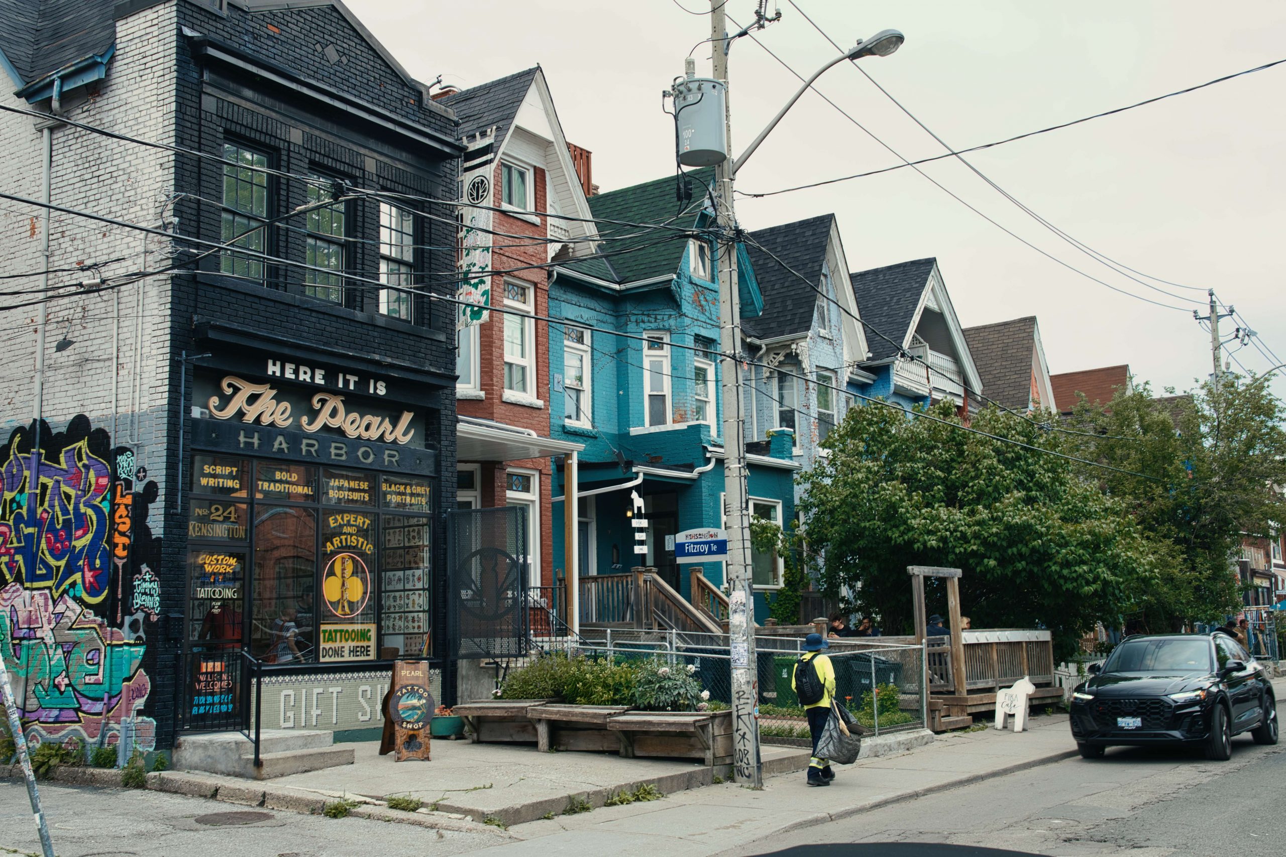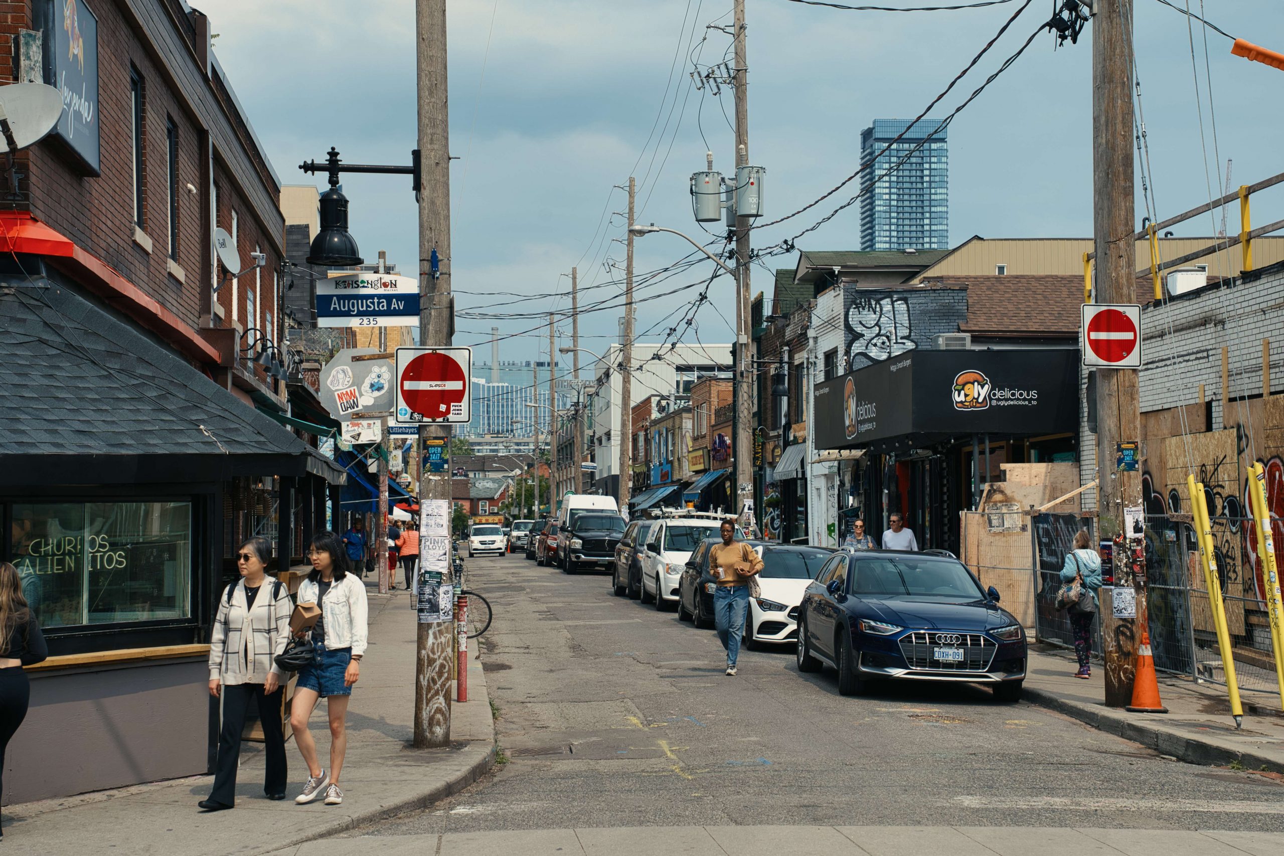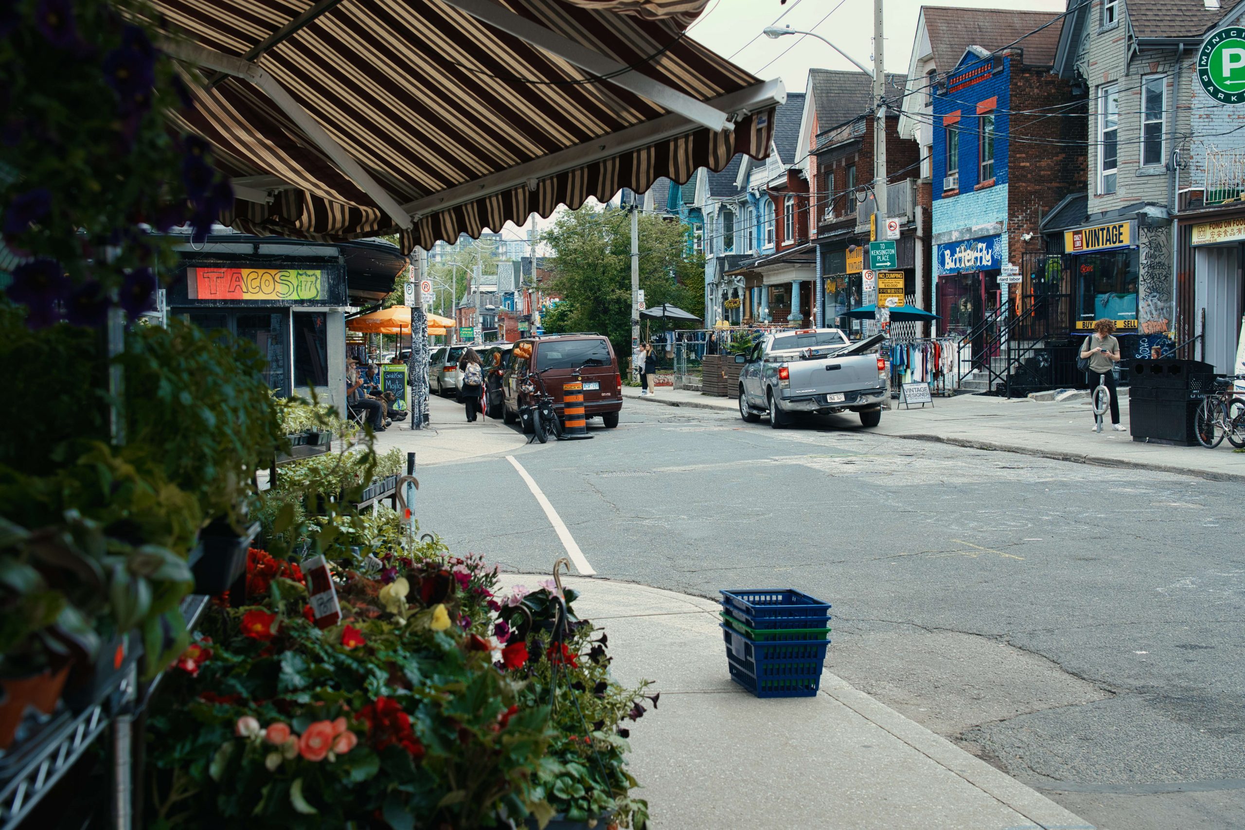 Nun war also auch mal Zeit für ein bisschen Touri-Kram. Auf den Wegen um unsere Sim Karten etc. zu organisieren, konnten wir die Stadt zu Fuß schon mal gut erkunden. Direkt um die Ecke vom Hostel liegt der „Kensington Market“. Jetzt schon einer unserer Lieblingsorte in dieser Stadt. Alternativ, multikulti, entspannt, interessant. Wobei diese Beschreibung auch auf ganz Toronto zutrifft. Obwohl es eine Großstadt (die größte Kanadas) mit vielen Skyscrapern ist, stresst uns diese Stadt bisher gar nicht. Die Menschen sind so schön entspannt und haben ein sehr angenehmes Miteinander. Der typische Torontorianer? Nicht definierbar. Man trifft hier auf den Straßen Alles und Jeden. Als „Tourist“ fällt man hier kaum auf und man fühlt sich sehr gut aufgehoben. Besonders gut gefällt uns, dass hier alle so rumlaufen, wie es ihnen gefällt, jede und jeder kann sie oder er selbst sein und das ist ein verdammt schönes Gefühl.
