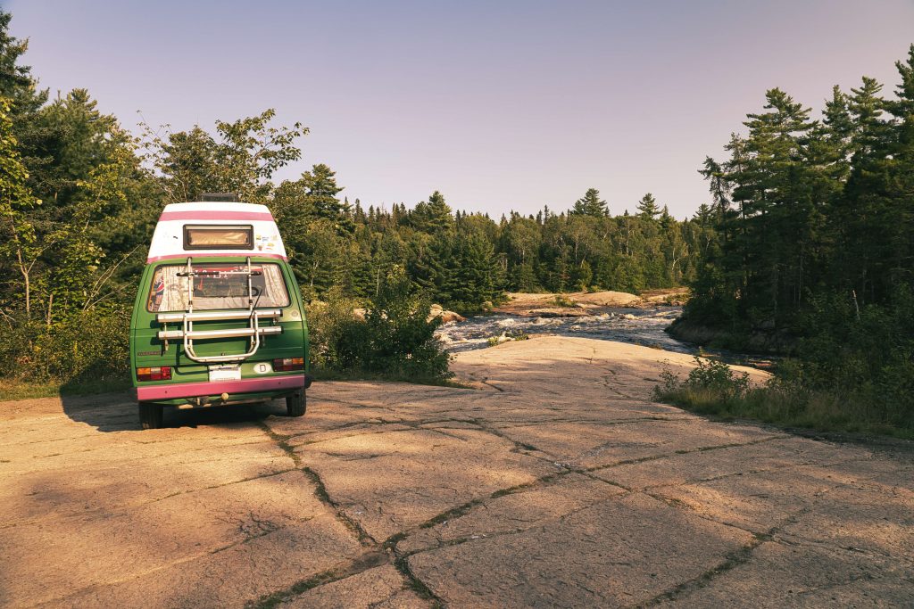 Spät abends kommen wir bei Walmart in Campbellton an, um dort die Nacht zu verbringen (die meisten Walmarts hier in Kanada dulden eine Übernachtung in einem Camper auf ihrem Parkplatz. Teilweise standen wir zusammen mit bis zu 15 anderen Campern über Nacht auf dem Parkplatz). Wir freuen uns, denn die Menschen sprechen endlich wieder Englisch. Es ist zwar auch bisschen dämlich, aber zu wissen, dass man wieder vollumfänglich mit allen Menschen kommunizieren kann, ist schon ein schönes Gefühl. Am nächsten Tag, nach einem kurzen Geburtstagsanruf nach Hause, geht es weiter Richtung Osten. New Brunswick ist… naja… langweilig, denken wir. Was aber auch an den wundervollen Eindrücken der Gaspésie liegen könnte. Nach einer so eindrucksvollen Natur wie dort, ist New Brunswick leider doch echt ein bisschen langweilig. Aber unser Eindruck sollte sich im späteren Reiseverlauf auch nochmal ändern. Südlich von Bathurst finden wir einen Übernachtungsplatz an den wunderschönen Pabineau Falls (Aha New Brunswick kann also doch auch schön). Wir parken mit Mausi auf den Felsen direkt an den Stromschnellen und gehen mal wieder Baden in der Wildnis. Ein Gefühl, dass unbeschreiblich ist. Eine Dusche? Nicht nötig, wenn man alle paar Tage mal in einen See, Fluss oder das Meer springen kann. Wir bleiben die Nacht hier und planen am nächsten Tag zu einem Cultural Center der Mi´gmaq First Nation zu fahren, um der Geschichte und Tradition noch ein Stück näher zu kommen. Lara hat bei Google Maps eine Route gefunden, die uns über kleine Straßen durch das Landesinnere dorthin führen sollte. Und was soll man sagen… manchmal ist Google Maps wohl auch nicht die beste Option. Wir fahren los auf einer asphaltierten Straße, bis es irgendwann rechts abgeht auf eine Schotterstraße, was aber auch nichts Ungewöhnliches ist hier in Kanada. Die Schotterstraße ist relativ gut ausgebaut (keine gefühlten 5 Meter tiefen Krater), relativ breit und ab und zu kommt auch nochmal Gegenverkehr. Langsam wird die Schotterstraße immer kleiner und ist immer schlechter ausgebaut. Irgendwann gibt uns Google Maps wieder vor, links abzubiegen in einen schmalen Waldweg. Der Weg erreicht schnell die Breite, dass wir mit dem Van gerade noch genau durchpassen. Es geht durch große tiefe Pfützen (zum Glück hat so ein T3 eine große Bodenfreiheit) vorbei an teilweise umgestürzten Bäumen. Auch wenn es schon kaum mehr möglich ist, wird der Weg immer schmaler und es ist nur noch ein Weg, der aus zwei Spurrillen besteht mitten im Wald. Wir machen uns langsam Sorgen, ob das hier das Richtige ist, für ein 40 Jahre altes Auto, aber fahren erstmal noch weiter. Achja Handyempfang haben wir natürlich auch schon längst nicht mehr und die letzten Menschen, die wir gesehen haben, sind auch schon eine ganze Weile her. Und seit wir das erste Mal auf die Schotterstraße abgebogen sind, sind mittlerweile so 1,5-2 Stunden vergangen. Wir schauen uns die Strecke auf Google Maps nochmal an und stellen fest, dass die „Straßen“ im weiten Verlauf sogar noch enger und schwieriger werden. Kurz darauf ist dann unsere Abenteuerreise auf diesem Waldweg auch vorbei. Ein großer umgestürzter Baum versperrt uns den Weg. Vorbeikommen oder den Baum aus dem Weg zu räumen (und ja, wir haben es versucht) ist keine Option. Naja und mit dem Auto wenden natürlich auch nicht. Also geht es im Rückwärtsgang viele Meter zurück, wo endlich eine kleine Stelle kommt, wo wir in mehreren Zügen wenden können. Es reicht uns, wir fahren zurück. Es wird nicht besser und die Gefahr hier liegen zu bleiben wird uns zu hoch. Also fahren wir die 1,5-2 Stunden wieder ganz zurück bis zur asphaltierten Straße und entscheiden uns das Cultural Center auszulassen und uns auf den Weg zum nächsten Nationalpark and der Küste New Brunswicks zu machen. Im Nachhinein wird uns bewusst, was für ein dummes Risiko wir da eingegangen sind. Mitten im Nichts, ohne Handyempfang und wenn das Auto liegen geblieben wäre, hätte man uns da nicht so einfach rausbekommen. Aber es war ein Abenteuer, von dem wir wohl noch lange berichten werden.