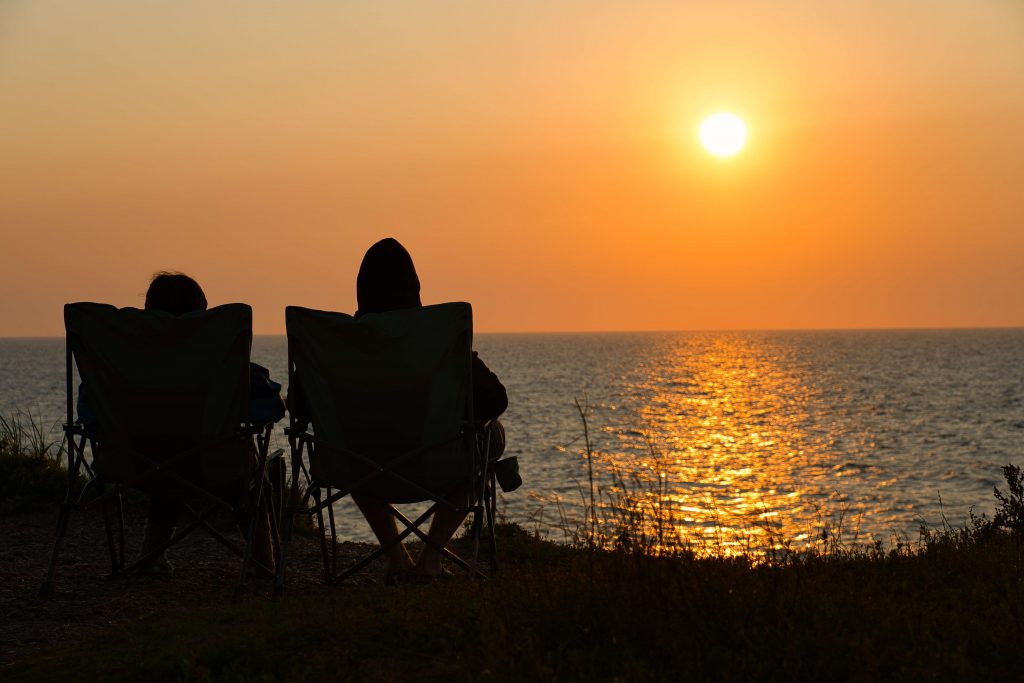Im Norden Neufundlands besuchen wir die Twilingate Islands. Auch hier erwartet uns wieder eine felsige Küstenlandschaft, aber doch so anders als im Westen der Insel. Die Nacht verbringen wir auf einem alten verlassenen Campingplatz direkt am Wasser zwischen zwei Bergen. Vor ein paar Jahren scheint es hier noch einen richtig tollen Campingplatz gegeben zu haben. Heute sind nur noch ein paar kleine Holzhütten und die kleinen ebenen Flächen für die Camper übrig. Dafür kann man hier nun kostenlos übernachten. Eine Toilette oder geschweige denn eine Dusche gibt es hier nicht. Im Prinzip gibt es hier Garnichts, außer einem Platz, wo man stehen kann. Aber egal, mit dieser Aussicht, direkt aufs Wasser über kleine bis große Felsen, die aus dem Wasser ragen, braucht man das alles gar nicht. Am Abend werden wir belohnt mit einem der schönsten Sonnenuntergänge, die wir bisher erlebt haben. Wir klettern auf einen der Felsen und blicken auf das ruhige, fast spiegelglatte Wasser. Wir sind dort ganz allein und die Sonne lässt den Himmel in einer Farbenpracht erleuchten, die wir bis dahin noch nie so gesehen haben. Gelb über orange bis knall rot. Ein dunkles tiefes blau über türkis bis lila. Die kontrastreichen, tiefschwarzen Silhouetten der Felsen setzen sich klar vom Himmel ab und alles spiegelt sich in der ruhigen See. Ein Vogelschwarm zieht vorbei und die Möwen kreischen. Unbeschreiblich schön. Es ist einer der wenigen Momente, wo einem die Tränen kommen könnten, weil alles hier und jetzt gerade so perfekt ist.