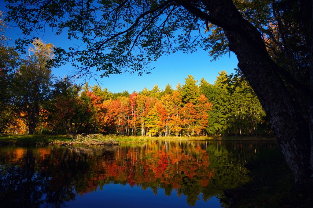 Nun gilt es aber erstmal die nächsten Tage irgendwie rumzubekommen. 1,5 Stunden Fahrt Richtung Süden liegt der Kejimkujik Nationalpark (auch Keji genannt). Wir beschließen, dort ein paar Tage zu verbringen. Durch das Thanksgiving Wochenende und damit auch das letzte Wochenende in dem die Nationalparks geöffnet haben, ist der Campingplatz fast voll ausgebucht. Doch wir haben, wieder einmal, Glück. Es gibt noch einen freien Platz für uns. Auf dem Weg dorthin genießen wir den Indian Summer hier in Nova Scotia. Wunderschöne bewaldete Berge mit Laubbäumen in unendlich vielen verschiedenen Rottönen begeistern uns und helfen so, ein bisschen von dem Rückschlag abzulenken. Auch im Keji können wir wundervolle Wanderungen entlang der Seen und Flüsse machen, in denen sich die knallroten bis gelben und teils noch grünen Bäume spiegeln. In einem Moment, in dem wir einfach am Strand sitzen und über den See blicken denken wir uns, dass das vielleicht dieses Glück im Unglück ist. Denn wenn Mausi am gleichen Tag noch wieder fertig geworden wäre, hätten wir diese schönen Momente verpasst. Ansonsten gehen wir unseren neuen Leidenschaften nach, in der Hängematte liegen und abends am Lagerfeuer sitzen. Einen Abend kommt tatsächlich Heiner auch noch vorbei. Wir verbringen einen richtig tollen Abend am Lagerfeuer miteinander. Wir quatschen, lachen und trinken Bier- und Rumspezialitäten, die Heiner von seiner Urlaubstour mitgebracht hat. Für Heiner ist es sein letzter Abend vom Urlaub, bevor er sich wieder auf den Weg nach Hause, nach Montreal macht. Am nächsten Abend fällt uns auf, dass viele der anderen Camper ganz viel Halloween Deko aufstellen, ihre Plätze und Camper dekorieren, Tische mit Süßigkeiten aufstellen und sich teilweise sogar verkleiden. Wir kommen mit einer Frau ins Gespräch und fragen sie, was es damit auf sich hat, da Halloween ja eigentlich noch lange hin ist. Sie erzählt uns, dass das eine Tradition in dem Nationalpark ist. Sie feiern jedes Jahr am Thanksgiving Wochenende das „Kejiween“. Wir drehen abends im Dunkeln nochmal eine Runde über den Platz und genießen die teilweise aufwendig dekorierten Plätze und die kunstvollen geschnitzten Kürbisse. Wenn auch nicht komplett, aber teilweise können uns die Tage hier im Keji sehr gut ablenken. Wir stellen auch fest, dass seit wir losgefahren sind, noch nie so lange an ein und demselben Ort waren. Wieder mal ein kleiner Miniurlaub.
